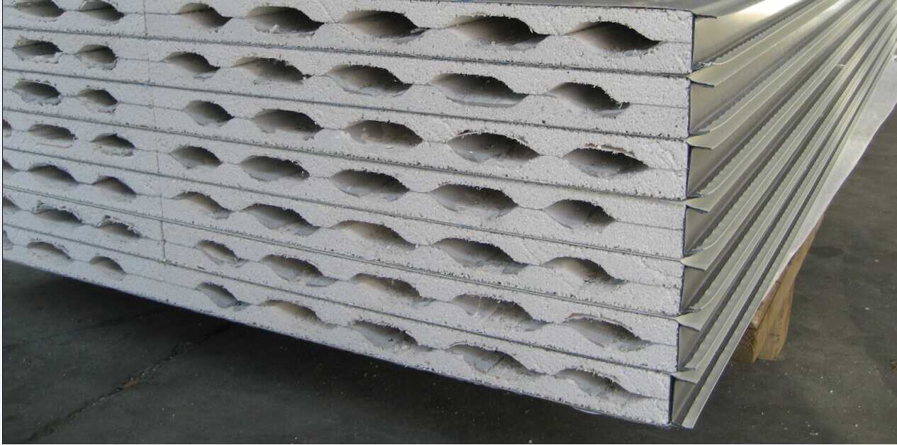硫氧鎂夾芯板充分發(fā)揮了硫氧鎂復合材料的獨特性能,在防火,防潮,防脫膠,高強度,保溫,隔熱,吸音等方面有著顯著地優(yōu)點及功效。 生產(chǎn)工...